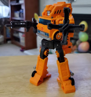 A nice touch is the additional rigging equipment that can attached in both modes. My brother is a crane operator and I remember watching these in use while giving him a ride to work when his truck was broken down. It's just an extra bit of play value that adds a bit of realism to the crane. Not to mention, the original Grapple/Inferno mold had additional parts you could use in place of the hands in robot mode. It's nice to see a throwback to that. There's a nozzle attachment on the side of the truck that can also be used in this manner... which I didn't take a picture of. That gives you a much more traditional Grapple with his nozzle hand. Man, I love this toy.